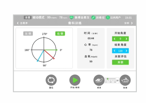 骨科訓(xùn)練模式:在限定的運(yùn)動(dòng)區(qū)間內(nèi)往復(fù)的被動(dòng)運(yùn)動(dòng),適用于術(shù)后或肢體運(yùn)動(dòng)受限的患者使用。