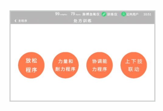 處方訓(xùn)練模式:經(jīng)典的放松、力量、協(xié)調(diào)及上下肢聯(lián)動(dòng)程序,可快速進(jìn)行標(biāo)準(zhǔn)化訓(xùn)練。